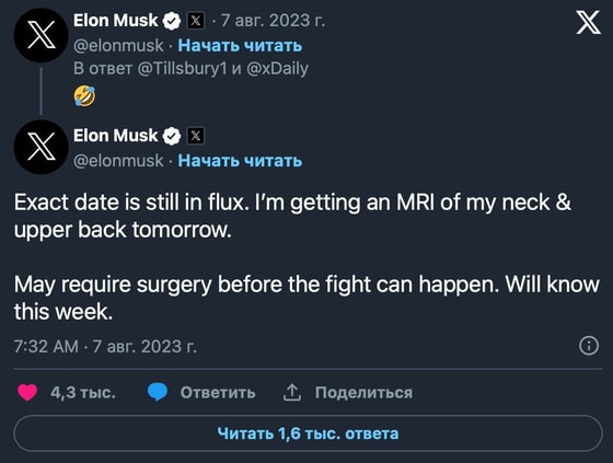 Отметим, ранее Илон Маск уже говорил о проблемах со спиной. В прошлом году он рассказывал, что однажды на вечеринке «смог повалить чемпиона мира по сумо», но в процессе повредил шею, что привело к «семи годам безумных болей в спине».