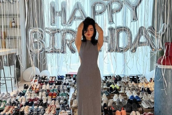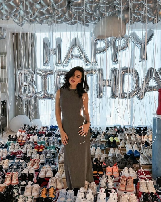Дина выложила фото в окружении кроссовок и воздушных шаров, подписав: «Даша Букина на максималках».