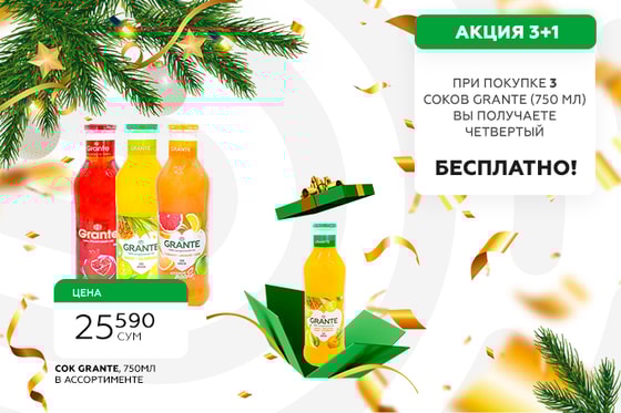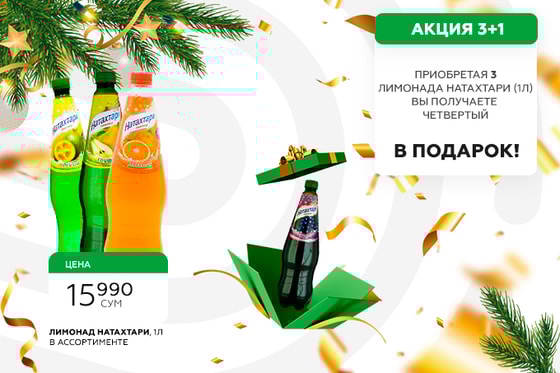Также сеть Makro объявила о старте акций на позиции лимонада Натахтари, которая пройдет по всей сети и соков GRANTE для филиалов города Ташкент. Срок акций с 23.12.2021 по 22.01.2022.