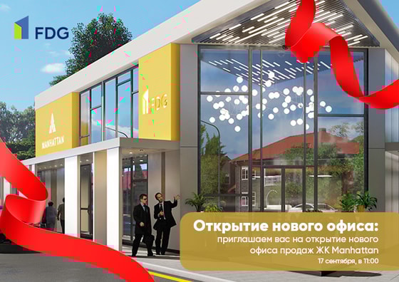Церемония открытия головного офиса продаж ЖК Manhattan пройдёт 17 сентября, начало в 11:00. Посетить офис продаж и приобрести квартиры по специальным ценам можно с 17 по 19 сентября с 9:00 до 19:00. Гости смогут детально рассмотреть архитектуру здания и макет, планировки и инфраструктуру, познакомиться с генеральным директором FDG Ойбеком Шодиевым и специалистами компании. Посетителей будут ждать приятные бонусы, выступление кавер группы «Манхеттен», живой звук, вкусные коктейли, фотозона и сувениры бренда.