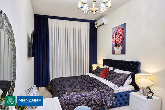 В многоэтажных жилых домах покупателей ждут квартиры площадью от 29 до 100 кв. м. Преимущество квартир в жилом комлексе Manzara в том, что они поступают в продажу с готовым качественным ремонтом, а также они характеризуются продуманной планировкой и эргономичностью пространства. Еще одним плюсом можно назвать высоту дверных проемов в 2,3 м, что визуально увеличивают пространство. Готовый ремонт также включает в себя покраску стен, установку входной и межкомнатных дверей, укладку кафеля и высококлассного полового покрытия таркет.