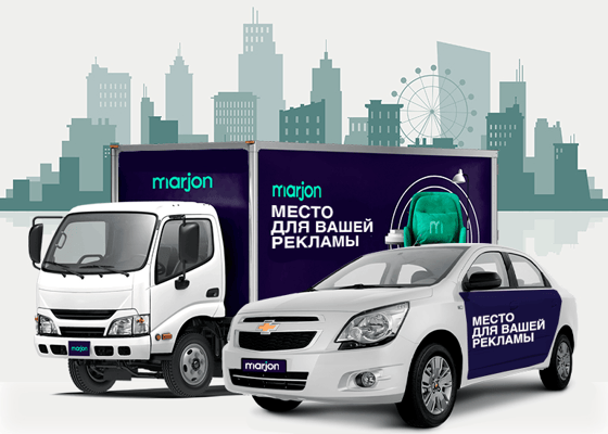 С помощью Marjon клиенты могут рекламировать свой продукт или бренд на сотнях грузовых и легковых автомобилей, выбрать марку автомобиля, маршрут и город, где будут двигаться эти автомобили.