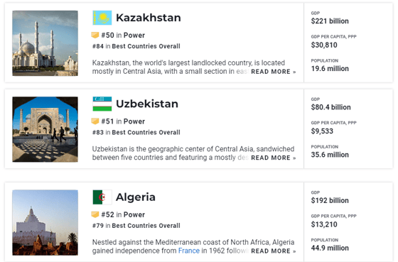 Список возглавили США, Китай и Россия. Узбекистан расположился между Казахстаном и Алжиром.