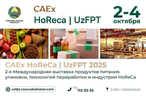 CAEx HoReCa & UzFPT 2025 приглашает компании принять участие в выставке, продемонстрировать свою продукцию и погрузиться в атмосферу бизнес-нетворкинга.