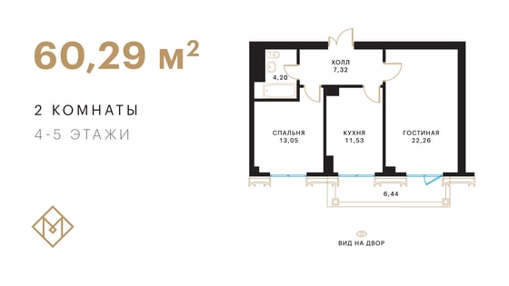 На второй линии резиденции премиум-класса Mirabad Avenue доступны 4 малогабаритные квартиры площадью 60, 29 м².