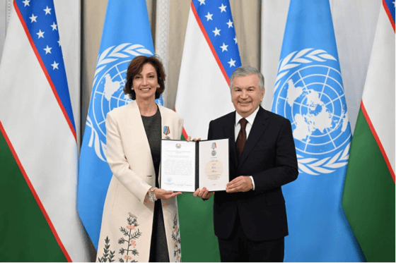 Вчера президент Шавкат Мирзиёев провёл встречу с генеральным директором ЮНЕСКО Одри Азуле. Переговоры прошли в тёплой и искренней атмосфере. В знак признания её вклада в развитие сотрудничества в сфере науки, образования, культуры и средств массовой информации, а также поддержки инициатив по сохранению культурного наследия Узбекистана, глава государства вручил госпоже Азуле орден «Дўстлик».