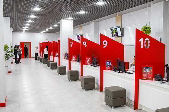 На сегодняшний день у Mobiuz насчитывается 15 Центров обслуживания (ЦО) и множество собственных мини-офисов по республике. Компания начала реализацию проекта по полной модернизации сети обслуживания абонентов. Он предусматривает современный дизайн интерьеров и улучшенные стандарты оказания услуг. Ведь именно во фронт-офисах строятся долгосрочные и доверительные отношения с абонентами.
