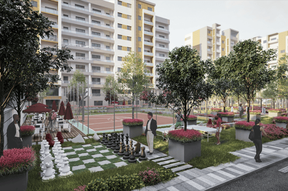В комплексе будут созданы все необходимые условия для вашего яркого образа жизни: по 2 лифта, 2 подземных паркинга на 940 мест, широкие и зеленые аллеи, 1,5 га эко сада, спортивные площадки, крытый и открытый бассейны, уютная детская площадка и многое другое. Вид из ЖК «Modern Sergeli» открывается на столицу совершенно потрясающий.