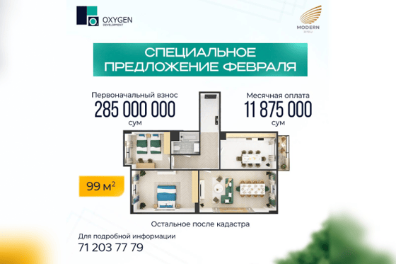 ЖК «Modern Sergeli» является одним из совершенных проектов, который строится с использованием современных, передовых, архитектурных и строительных технологий Европы. Стоимость жилья, в которое вы сейчас инвестируете, с годами будет только расти.