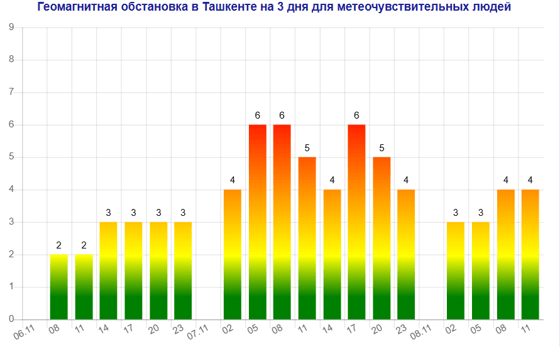 В Ташкенте ожидается мощная магнитная буря, следует из данных сервиса Meteonova.