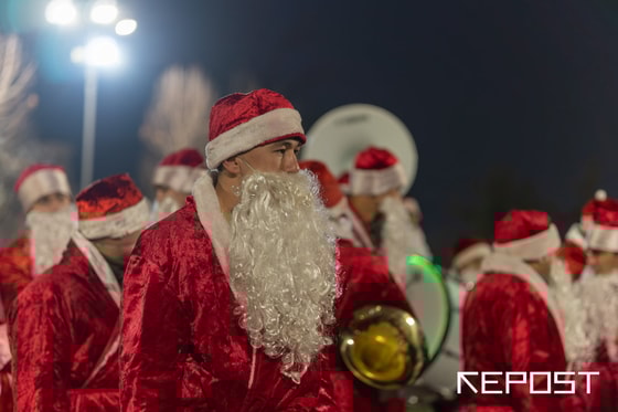 26 декабря в Ташкенте прошел праздничный парад Дедов Морозов, организованный военным оркестром Национальной гвардии.