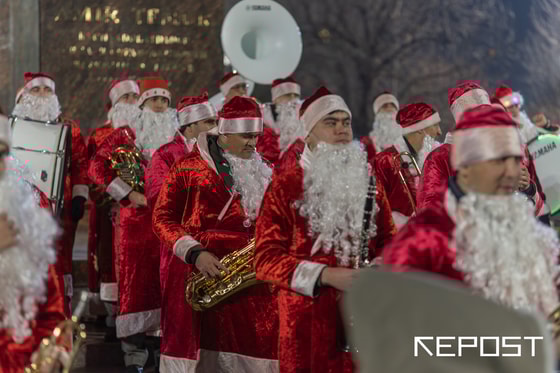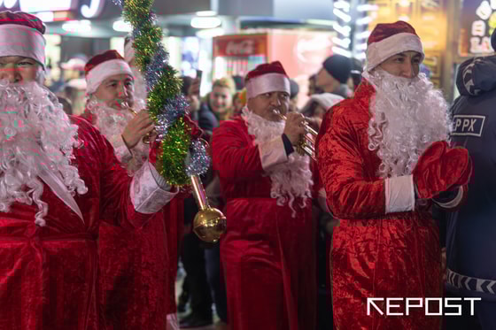 Музыканты в новогодних костюмах прошли по центральным улицам столицы, сопровождая парад живой музыкой. Как это было – смотрите в фоторепортаже Repost.
