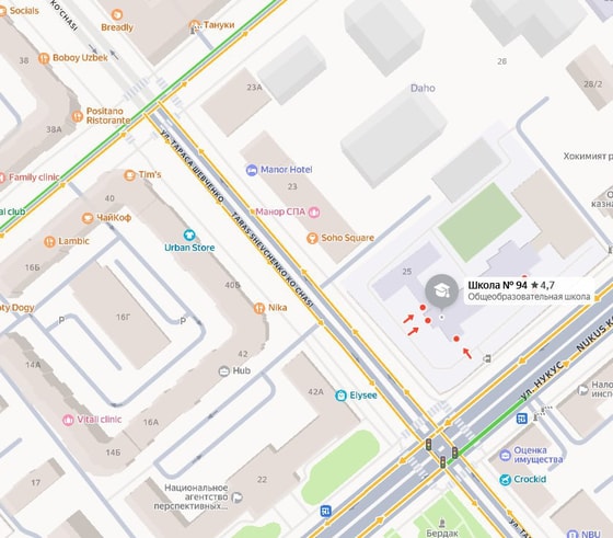 - участок дороги от здания школы №94 до пересечения с улицей Саида Барака.
