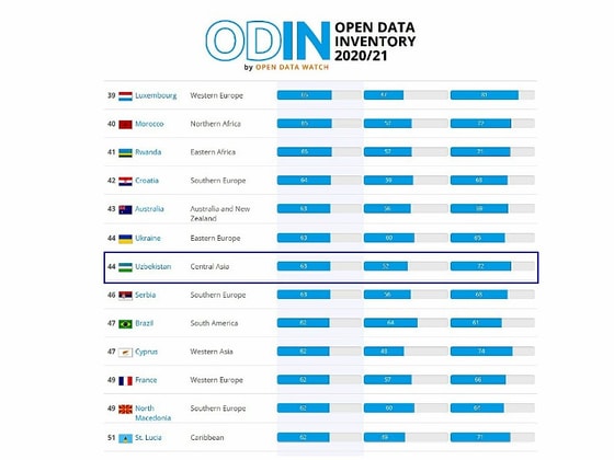 С этим показателем, Узбекистан занял 44 место в мире и 1 место в Центральной Азии, а также поднялся на 125 позиции в рейтинге ODIN.