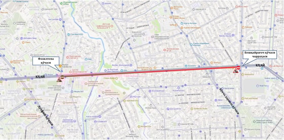 - по участку дороги от перекрестка улицы Фозилтепа до перекрестка улицы Бешкайрагач.
