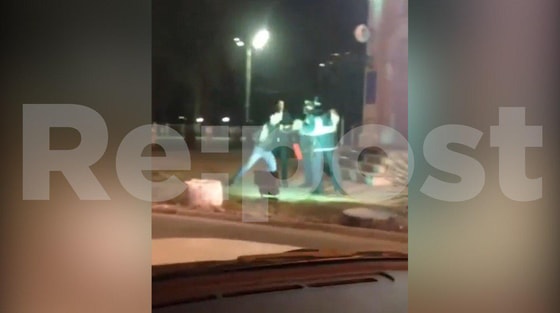 В Ташкенте мужчина напал на сотрудника ДПС, несмотря на команду остановиться. На ролике видно, что драка произошла на улице Шахрисабз (рядом с гостиницей Le Grande Plaza).