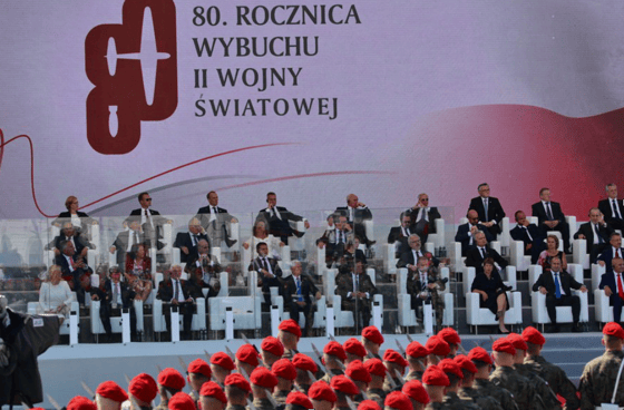 1 сентября на площади Пилсудского в центре Варшавы начались мероприятия по случаю 80-й годовщины начала войны. Событие посетили приглашенные польским руководством лидеры стран НАТО, ЕС, «Восточного партнерства». Среди гостей: вице-президент США Майк Пенс, президент Германии Франк Вальтер Штайнмайер, канцлер той же страны Ангела Меркель. Также присутствовали президент Украины Владимир Зеленский, грузинский лидер Саломе Зурабишвили, главы Литвы, Латвии, Мальты, Словаки, Черногории, Эстонии, Исландии, Хорватии, Болгарии, Словении, Албании и Венгрии. В мероприятиях приняли участие и премьеры Франции, Бельгии и Люксембурга Эдуард Филипп, Шарль Мишель и Ксавье Беттель, а также генерал-губернатор Канады Жюли Пейетт.