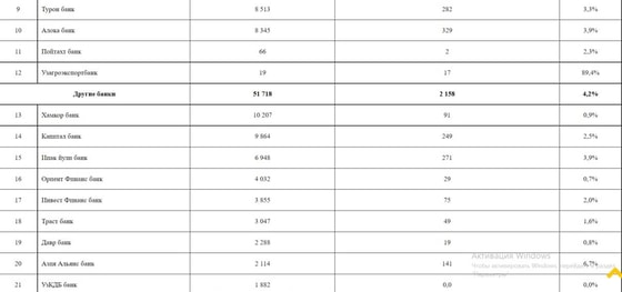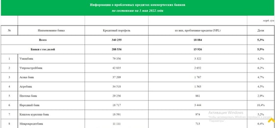 Кроме того, объём NPL уменьшился в Узнацбанке, банке «Асака», «Ипотека-банке», «Туронбанке», «Пойтахтбанке».