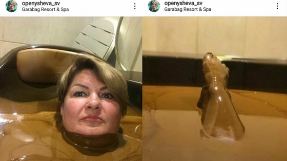 Женщина отдыхала в санатории Азербайджана. Лечебная нафталановая нефть, напоминающая по консистенции шоколадная массу, получила свое название благодаря сорту нефти, которая добывается в азербайджанском городе Нафталана.