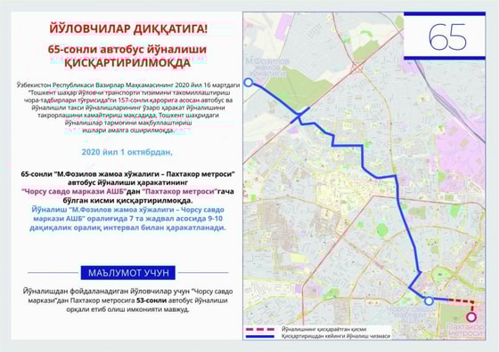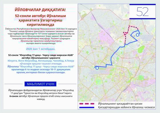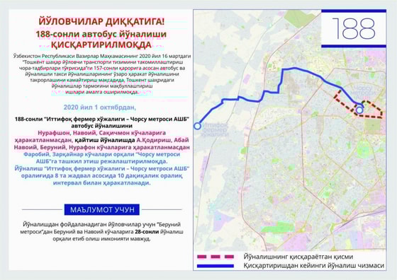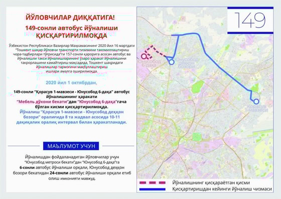 Отмечается, что данные новшества основаны на Постановлении Кабинета Министров Республики Узбекистан от 16 марта 2020 года № 157 «О мерах по совершенствованию системы городского пассажирского транспорта Ташкента».