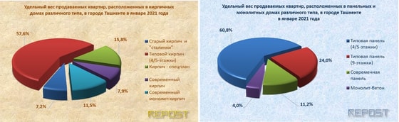 Цена предложения в национальной валюте за январь 2021 года повысилась на 0,7% - до 7 322,0 тысячи сумов/кв. м. Уровень СЦП квартир в январе 2021 года превысил показатель января 2020 года (год к году - г/г) на 8,9% в долларовом выражении и на 19,9% - в сумовом. Значительный рост показателей, выраженных в национальной валюте, объясняется перманентным ослаблением национальной валюты в течение года.