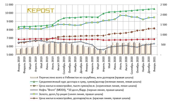 Некоторую поддержку рынку жилья оказывают и денежные переводы из-за границы. Наблюдается восстановление объёма поступлений денежных средств от трудовых мигрантов. Ранее озвученные прогнозы по сокращению объёмов переводов в Узбекистан оказались более пессимистичными.