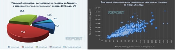 В январе 2021 года наибольшую долю рынка квартир, выставленных на продажу, занимали двухкомнатные (44,9% от общего предложения на рынке квартир на вторичном рынке) и трёхкомнатные квартиры (28,8%).