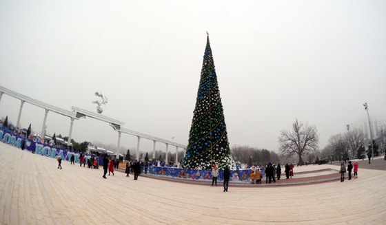 Новогодняя елка установлена на проспекте Мустакиллик сзади библиотеки им. Алишера Навои.