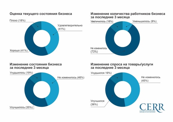 Из 1003 опрошенных предприятий 41% оценили текущее состояние бизнеса как «хорошее», 41% как «удовлетворительное» и 18% — «плохое».