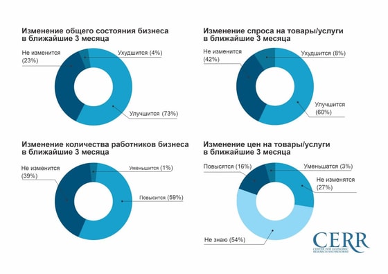 73% предприятий оценили, что перспективы их бизнеса «улучшатся», 23% считают, что «не изменятся» и только 4% — «ухудшатся».