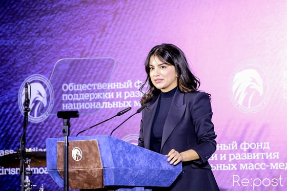 На фото: Саида Мирзиёева – заместитель председателя попечительского совета фонда, Тимур Абдулин – главный редактор Repost.uz, Комил Алламжонов – председатель попечительского совета фонда.