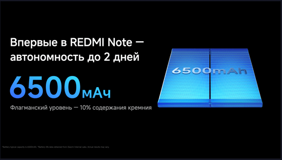 Модель REDMI Note 15 получила увеличенную батарею на 6 000 мА·ч. Поддержка реверсивной зарядки мощностью 22,5 Вт или 18 Вт (в зависимости от модели).