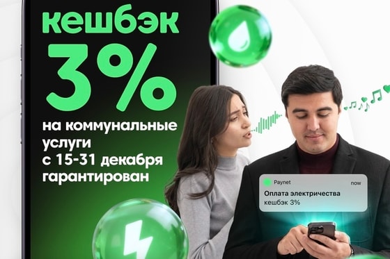 Гарантированный кешбек 3% на все коммунальные платежи в приложении Paynet. Акция действует по всему Узбекистану с 15 по 31 декабря текущего года, и самое главное, доступна абсолютно всем пользователям приложения Paynet, даже новым.