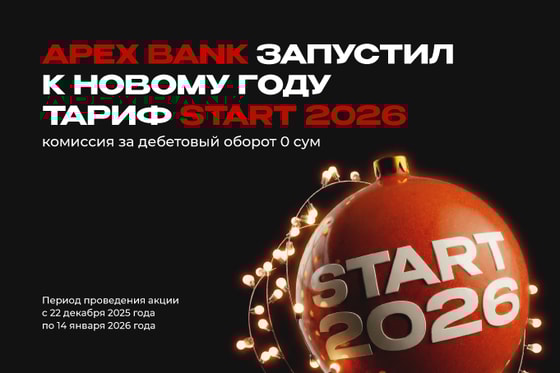APEX BANK запустил новогодний тариф START 2026 для юридических лиц и индивидуальных предпринимателей. Тариф рассчитан на удобное и экономичное обслуживание бизнеса в праздничный период и в начале нового года.