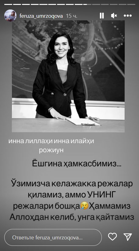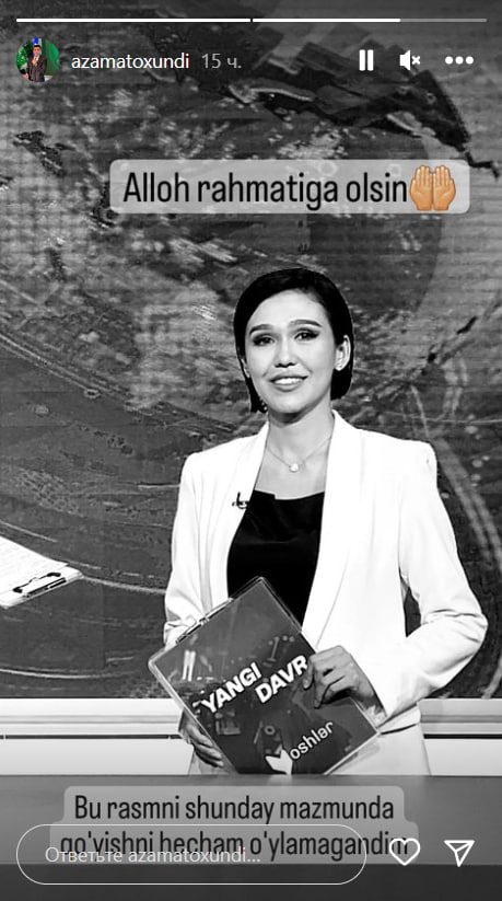 В возрасте 31 года умерла журналистка, телеведущая программы Yangi Davr телеканала Yoshlar Нозима Махмудова. Об этом сообщили ее коллеги.