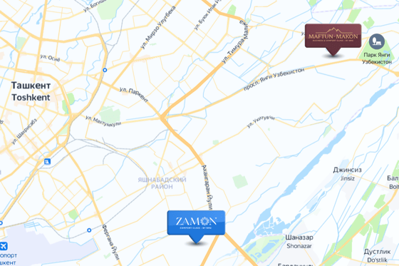 Локации, в которых расположены жилой квартал Maftun Makon и жилой комплекс Zamon, развиваются семимильными шагами. Это область повышенного интереса со стороны руководства страны и бизнесменов, и совсем скоро вокруг новостроек вырастет удобно спроектированный зеленый мегаполис. Не зря «Новый Ташкент» назвали «проектом, смотрящим на 50 лет вперед». Именно поэтому сейчас самый удачный момент, чтобы сделать выгодное вложение в своё будущее и приобрести квартиру в строящемся комплексе. Тем более, что на этапе строительства цены гораздо ниже, чем после его завершения.