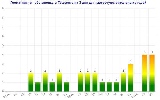 Послезавтра (5 июня) в Ташкенте будет наблюдаться магнитная буря мощностью четыре балла, следует из данных сервиса Meteonova.