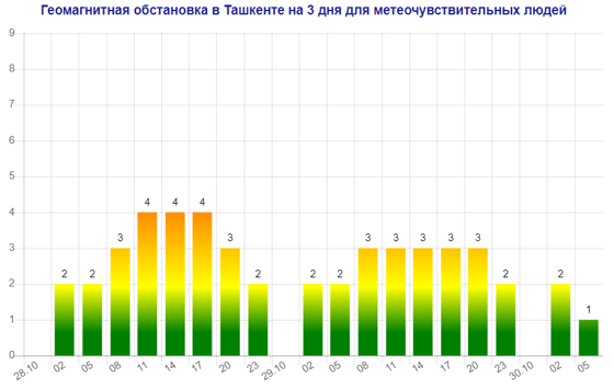 Сегодня (28 октября) в Ташкенте будет наблюдаться магнитная буря мощностью четыре балла, следует из данных сервиса Meteonova.
