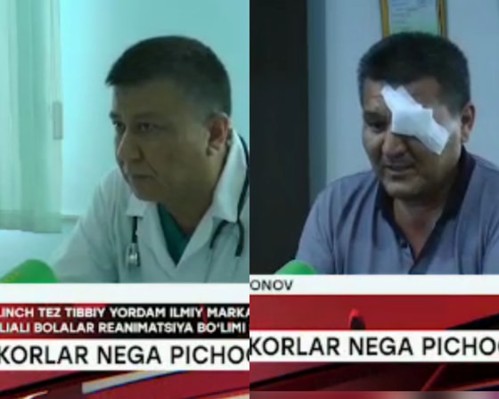 В Сырдарьинской области врачи, получившие ножевые ранения от рук разъяренного отца из-за смерти ребенка, дали интервью информационной телепередаче Davr.
