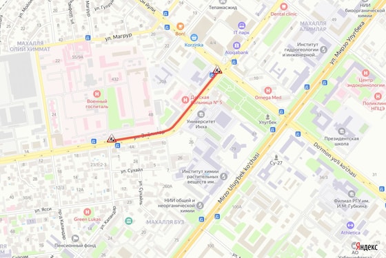 На одной из улиц Мирзо-Улугбекского района Ташкента частично ограничили движение транспорта, сообщает пресс-служба столичного хокимията.
