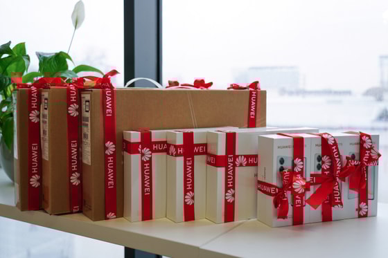 Участники Фирдавс Олимжонов, Отабек Ортиков, Шерзод Абдуллаев награждены ноутбуками от Huawei.