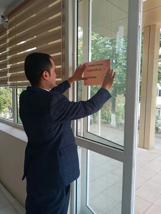 В общественных местах Чирчика начали развешивать таблички с просьбой говорить на узбекском языке, сообщает пресс-служба хокимията города.