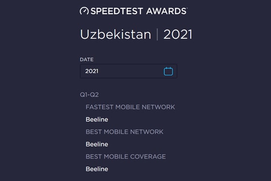 По результатам исследования, Beeline Uzbekistan получил три награды от Ookla Speedtest Awards® - как оператор с лучшей мобильной сетью, самой быстрой мобильной сетью и лучшим мобильным покрытием.