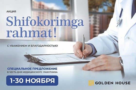С 1 по 30 ноября 2024 года действует акция, дающая возможность всем медицинским работникам приобрести жилье в жилых комплексах Harizma, Assalom Jomiy, Assalom Havo и Assalom Do’stlik на выгодных условиях. Все квартиры передаются с готовым ремонтом, что позволяет сразу заселиться и начать жить с комфортом.