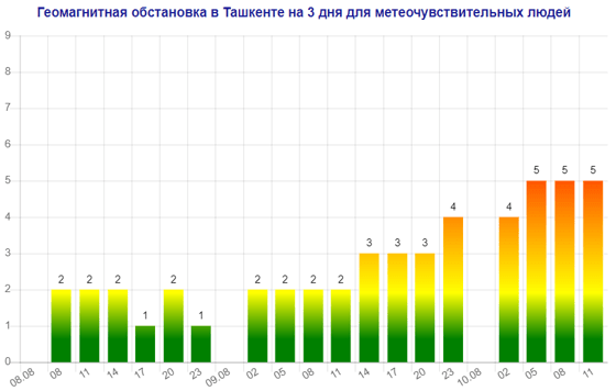 Послезавтра (10 августа) в Ташкенте будет наблюдаться магнитная буря мощностью пять баллов, следует из данных сервиса Meteonova.