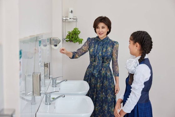Первая леди страны посетила школы в Рамитанском и Шафирканском районах региона. Здесь она побеседовала с учащимися о том, как важно рационально использовать водные ресурсы, соблюдать меры санитарии и гигиены для здорового образа жизни.