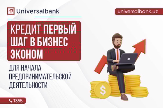 Кредит «Первый шаг в бизнес — Econom» рассчитанный специально для начинающих предпринимателей и самозанятых граждан, позволяет получить до 10 млн сумов сроком на 12 месяцев. Дополнительным преимуществом является льготный период до одного месяца, который дает время на организацию работы без давления первых выплат. Процентная ставка по кредиту составляет 32% годовых.