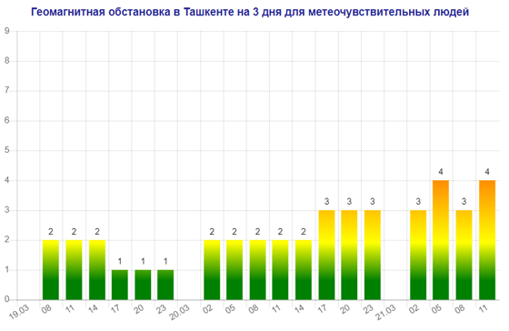 Послезавтра (21 марта) в Ташкенте будет наблюдаться магнитная буря мощностью четыре балла, следует из данных сервиса Meteonova.