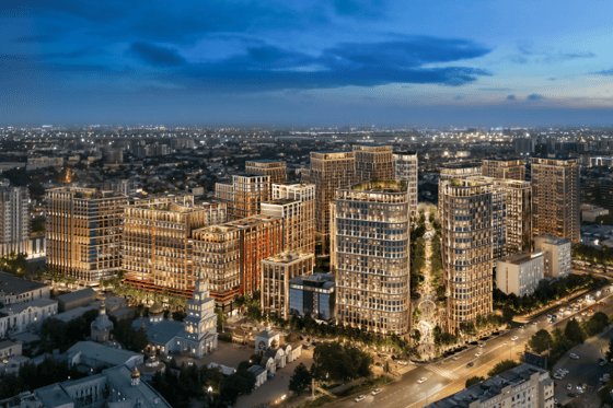 На территории предусмотрены приватные пространства и сервисы для жителей, международная школа и детский сад, бизнес-центры класса A и B, шопинг-авеню с бутиками мировых брендов, а также фитнес-центр и клиника премиум-класса.