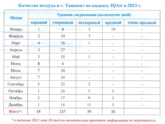 Январь 2023 года оказался самым загрязненным месяцем в Ташкенте, сообщает пресс-служба Министерства экологии.